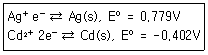 Cd(s)+Ag+⇄Cd2++2Ag(s)의 화학반응에서 반쪽반응식과 그에 따른 표준환원전위 E0가 다음과 같을 때 상대적으로 산화력이 큰 산화제(Oxidzing agent)에 해당하는 것은?