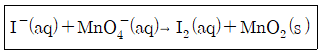 다음과 같은 이온반응이 염기성 용액에서 일어날 때, 그 이온반응식이 올바르게 완결된 것은?