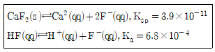 CaF2의 용해와 관련된 반응식에서 과량의 고체 CaF2가 남아 있는 포화된 수용액에서 Ca2+(qq)의 물농도에 대한 설명으로 옳은 것은? (단, 용해도의 단위는 mol/L이다.)