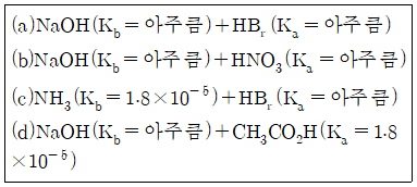 화합물 한 쌍을 같은 몰수로 혼합하는 다음 4가지 경우 중 염기성 용액이 되는 경우는 모두 몇 가지인가?