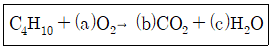 부탄이 공기 중에서 완전 연소하는 화학 반응식은 다음과 같다. 괄호 안에 들어갈 계수들 중 a의 값은 얼마인가?