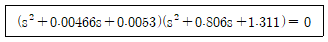 항공기의 운동방정식이 다음 식으로 결정되었다. 이 식으로부터 단주기운동의 고유진동수를 구하면 얼마인가?