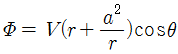 는 반지름 a인 원통 주위를 이상유체가 순환 없이 흐를 때에 나타낸다. 원통주위에서의 최대속도는?