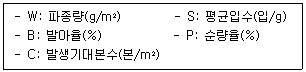 다음 조건에 따른 비탈파종녹화를 위한 파종량 산출식으로 옳은 것은?
