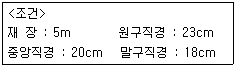 다음과 같은 조건을 가진 통나무의 재적을 Huber식에 의해 계산하면 얼마인가?(단, 소수 넷째자리에서 반올림 할 것)