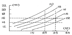 다음은 어떤 수종에 대한 지위지수곡선으로서 25년생을 기준 연령으로 한 것이다. 35년생으로 우세목의 평균 수고가 16m 라면 지위지수의 추정치는?