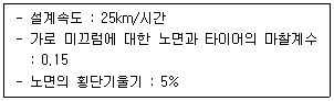 다음 조건에서 곡선반지름(m)은?