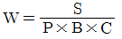 비탈파종녹화를 위한 파종량 산출식으로 옳은 것은? (단, W는 파종량(g/m2), S는 평균입수(입/g), B는 발아율(%), P는 순량율(%), C는 발생기대본수(본/m2))