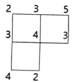 다음 그림에서 각 꼭지점이 높이(m)를 나타낼 때 점고법을 이용한 전체 토량과, 절토량과 성토량이 균형을 이루는 시공면고(높이)는? (단, 각 구역의 면적은 32m2로 동일)