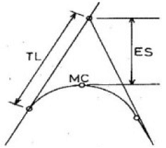 임도의 교각법에 의한 곡선 설치 시 각 기호에 대한 용어가 올바르게 나열된 것은?