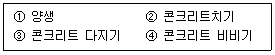 임도에서 콘크리트옹벽의 제작 과정을 순서대로 바르게 나열한 것은?