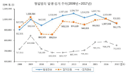2012년부터 2017년까지 검거건수는 감소하였다.