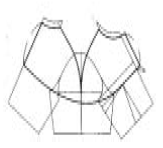 아래 그림의 굵은 선과 같은 패턴으로 제도하였을 때 완성된 칼라의 형태는?
