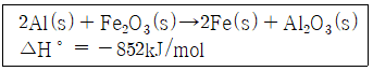 알루미늄 5g과 Fe2O3가 다음 식과 같이 화학양론적으로 반응할 때, 반응에 따른 열의 변화는? (단, 알루미늄의 원자량은 26.98g/mol이다.)