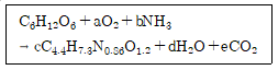 어느 특정 미생물에 대한 실험 측정 결과 기질탄소 (포도당 내 포함된 탄소)의 2/3(wt/wt)가 다음 식과 같이 바이오매스 (biomass)로 전환 하였다고 가정하였을 때 다음 반응의 양론 계수로 옳은 것은?