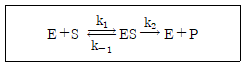 효소(E)가 기질(S)과 반응하여 효소기질화합물(ES)을 생성하고 생성물(P)을 생성하는 반응은 다음과 같다. 이 때 최대반응속도(Vmax)의 값은? (단, k1,k2,k-1은 각각 속도상수를 나타낸다.)
