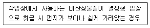 위험성평가 지침상 [보기]의 경우, 비산성 분류에 따른 화학물질의 노출수준등급(probability, 빈도)으로 옳은 것은?