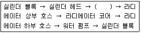 아래 보기는 기관의 수냉식 냉각장치에서 냉각수의 흐름을 나타낸 것이다. 괄호 안에 해당되는 것은?