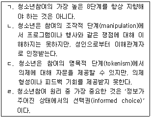 하트(Hart)의 청소년참여 사다리 모델(the ladder of participation model)에 관한 설명으로 옳은 것을 모두 고른 것은?
