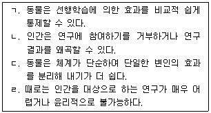 학습 연구에서 인간 대신 동물을 대상으로 하는 이유로 적절한 것을 모두 고른 것은?