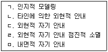 마이켄바움(D. Meichenbaum)의 자기조절행동을 향상시키는 단계가 순서대로 바르게 나열된 것은?