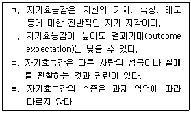 사회인지이론에서 제시한 자기효능감(self-efficacy)에 관한 설명으로 옳은 것을 모두 고른 것은?