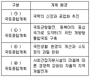 우리나라 국토종합계획의 배경에 대한 아래 내용에서 ㉠∼㉣에 들어갈 말이 차례대로 모두 옳은 것은?