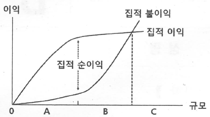 아래 그림은 도시화의 단계와 직접 이익의 발생 관계에 대한 것이다. 각 구간 A - B - C에 알맞은 도시화 단계를 순서대로 올바르게 나열한 것은?