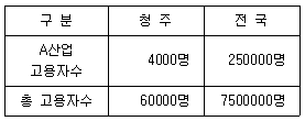 다음의 조건에서 청주의 A산업에 대한 입지계수(L.Q)는?