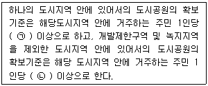 다음은 도시공원 및 녹지 등에 관한 법령에 따른 도시공원의 면적기준이다. ㉠과 ㉡에 들어갈 말로 모두 옳은 것은?