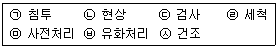 형광침투검사에 대한 [보기]의 작업을 순서대로 나열한 것은?