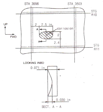 항공기의 손상 상태를 도시한 도면에 대한 설명으로 틀린 것은?