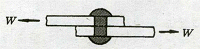 그림과 같이 두 판재가 200kgf 의 인장력을 받을 때, 그 사이의 리벳의 단면에 작용하는 전단 응력의 크기는 몇 kgf/cm2인가?(단, 리벳의 단면적은 2cm2이다.)