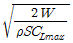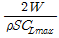 비행기의 실속속도를 구하는 식으로 옳은 것은? (단, W 항공기 무게, ρ 공기의 밀도, S 날개의 면적, Clmax 최대양력계수 이다.)