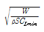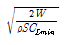 실속 속도를 구하는 식으로 가장 옳은 것은? (단, W : 항공기 무게, S : 날개 면적, CLmax 계수, CLmin : 최소 양력 계수, p : 공기밀도 이다.)