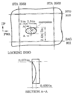 그림에서 기체 손상 부분의 외피(skin) 두께는 몇 in인가?