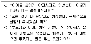 다음 예시에서 공통적으로 사용된 사회복지실천 개입 기술은?