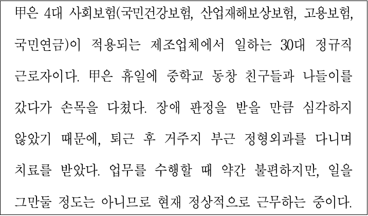 다음 사례에서 甲에게 적용되는 사회보험 급여는?