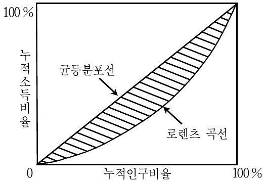 로렌츠 곡선에 대한 설명으로 옳지 않은 것은?