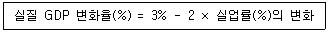 A국의 연간 실질 GDP 변화율과 실업률의 변화가 다음과 같은 관계에 있다. 이에 관한 설명으로 옳은 것은?