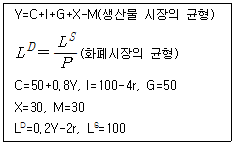 다음은 국가간 자본이동이 완전한 소규모개방경제의 모형이다. 해외 이자율이 10으로 항상 일정할 때 중앙은행이 통화량을 20만큼 증가시킨다면, 통화량 증가 전과 후의 균형국민소득의 차이는? (단, Y는 국민소득, C는 소비, I는 투자, G는 정부지출, X는 수출, M은 수입, LD는 실질화폐수요, LS는 명목화폐공급, P는 물가수준, r은 국내 이자율, 국내 이자율 수준은 해외 이자율 수준과 같다.)
