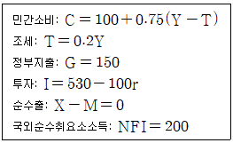 개방경제 K국의 국민소득계정이 다음과 같다. 국내총생산이 1,000일 때 실질이자율은 얼마인가? [(단, r은 실질이자율(%), Y는 국민총소득(GNI)이다.]