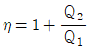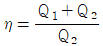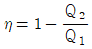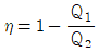 카르노사이클의 열효율 η, 공급열량 Q1, 배출열량을 Q2라 할 때 옳은 관계식은?