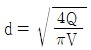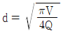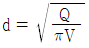 배관 설비에 있어서 관경을 구할 때 사용하는 공식은? (단, V : 유속, Q : 유량, d : 관경)