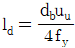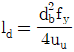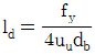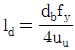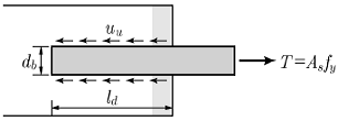 <보기>는 콘크리트 속에 매설된 철근이 한쪽 끝에서 인장력(T)을 받고 있음을 나타낸다. 철근의 정착길이(Id)에 대한 식으로 가장 옳은 것은? (단, As는 인장철근의 단면적, fy는 철근의 설계기준항복강도, uu는 철근과 콘크리트의 극한공칭부착강도, db는 철근의 공칭지름을 나타낸다.)