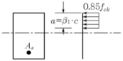 <보기>와 같은 균형 단면의 직사각형보에서 설계기준강도 fck가 33MPa이라면 계수 β1은? (단, c는 압축측 연단에서 중립축까지 거리이다.)