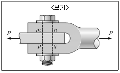 <보기>와 같이 볼트의 직경이 4cm이며 mp의 길이가 5cm이고 인장하중 P=20kN을 받는 볼트의 연결부에서 볼트 mnpq 부분의 지압응력 값은?