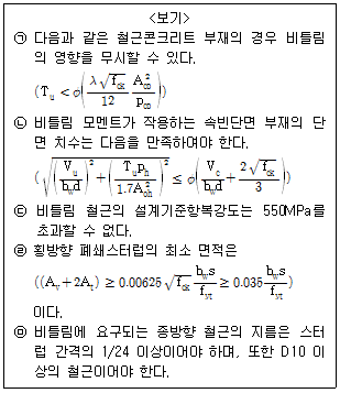 <보기>와 같이 콘크리트 구조기준(2012)에서 규정된 비틀림설계에 대한 설명 중 옳은 내용을 모두 고른 것은?