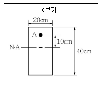 <보기>와 같은 보의 단면에 10kN의 전단력이 작용하는 경우 단면의 중립축(N · A)에서 10cm 떨어진 A점에서의 전단응력 값은?