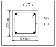 <보기>와 같은 기둥 단면에서 띠철근의 최대 수직간격은? (단, 정적조건을 기준으로 하며, D13의 공칭직경은 12.7mm, D35의 공칭직경은 34.9mm이다.)